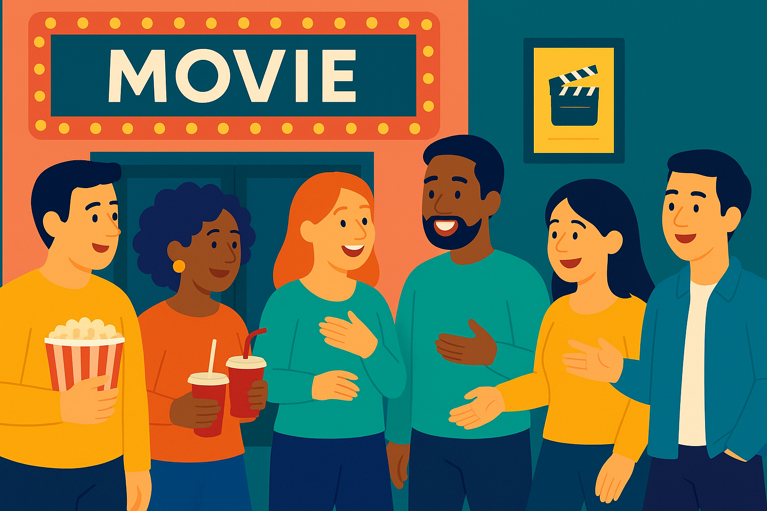 Prima il cinema e poi una pizza, per chiacchierare del film appena visto e scambiarsi pareri. Il modo migliore per incontrare persone nuove senza la paura di non avere abbastanza argomenti di discussione.